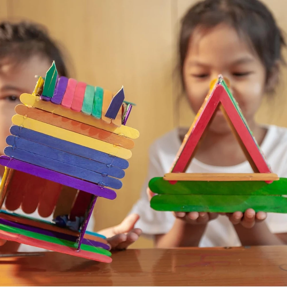 These colored wooden craft sticks are perfect for a wide range of DIY projects. Available in sets from 50 to 500 pieces to suit any crafting need. Ideal for popsicle molds, resin art, and other creative applications. Made from natural, durable wood for long-lasting use. The colorful finish adds a fun and vibrant touch to every project. Perfect for kids’ crafts, school projects, and home activities. Great for making miniature furniture, models, or decorative art. Lightweight and easy to handle for crafters of all ages. Encourages creativity, fine motor skills, and hands-on learning. Bring your artistic ideas to life with this versatile wooden stick set.