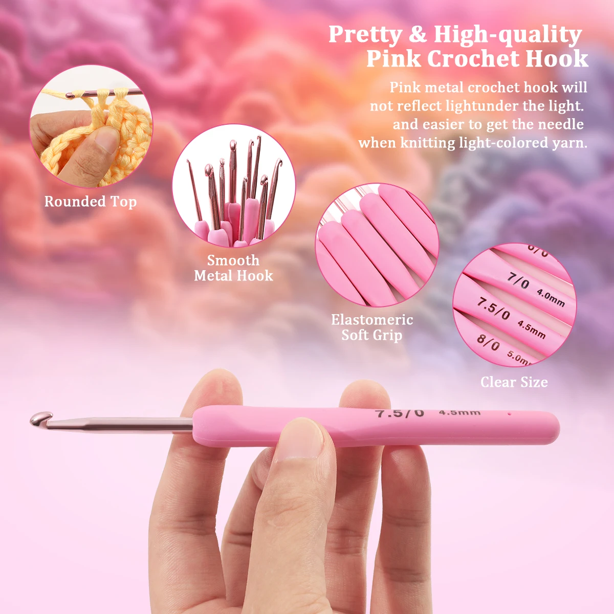 This 9-piece Pink Crochet Hook Set is perfect for all your knitting and crochet projects. Each hook is made of durable aluminum with a comfortable silicone handle for easy grip. Sizes range from 2mm to 6mm, suitable for different yarn thicknesses. Ideal for creating sweaters, scarves, hats, and other handmade items. The ergonomic design reduces hand fatigue during long crafting sessions. Perfect for beginners and experienced crafters alike. Lightweight and portable, making it easy to take on the go. Great for DIY projects, sewing, and weaving activities. This set also makes a thoughtful gift for craft enthusiasts. Enjoy creating beautiful, handmade pieces with this versatile crochet hook set.